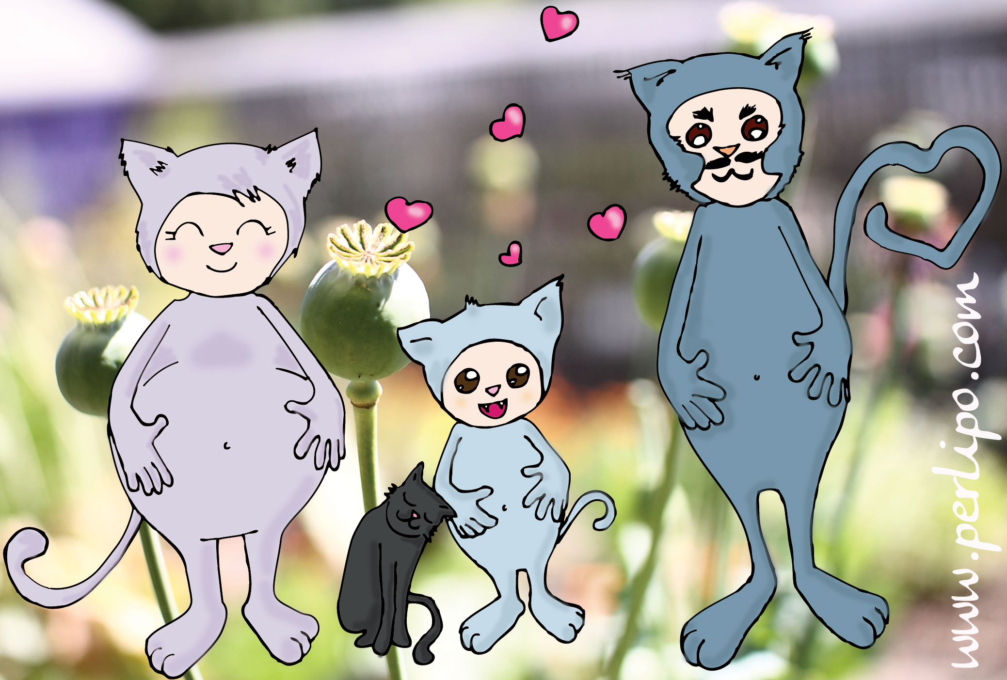 Since our son has been talking, he calls himself Baby Cat, his favorite pal to play with is our cat and he loves to imitate him… So very naturally, my husband and I became Daddy and Mummy Cat. But recently Baby Cat turned Little Cat, as Baby in now the name of the little one who is Mummy Cat’s tummy (Little Cat also has one in his tummy, this is why we decided to all pose for the picture).